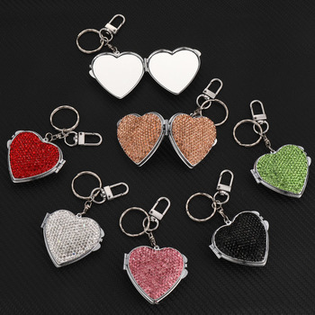 Bling hình trái tim nhỏ gọn mini trang điểm túi gương Keychain gấp nhỏ pha lê gương với Keychain