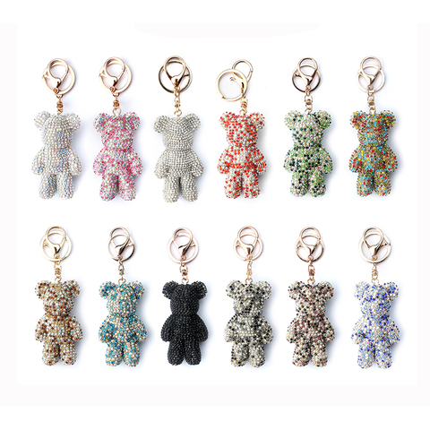 Bling gấu Keychain kim cương nạm tình cảm và cá nhân Túi Mặt dây chuyền xe Keychain Phụ kiện đầy màu sắc